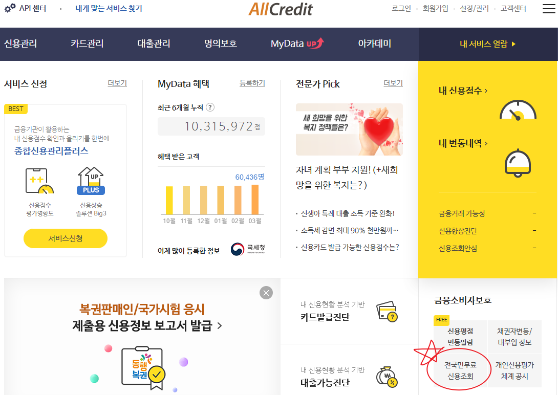✔️ 전국민 무료 신용조회 에서 신용조회를 하실 수 있습니다.